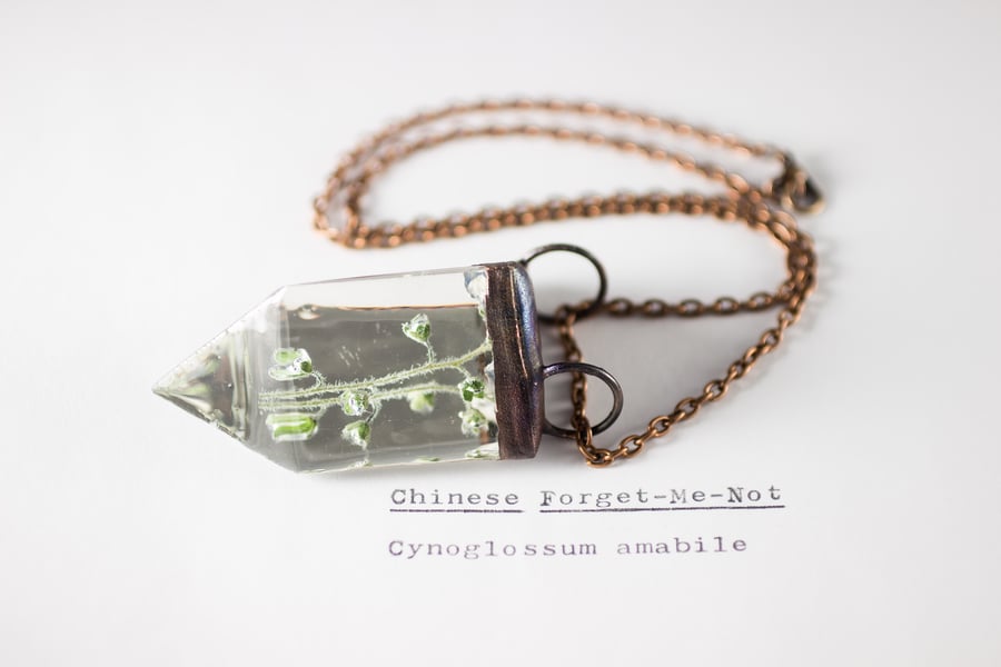 Chinese Forget-Me-Not (Cynoglossum amabile) - Small Copper Prism Necklace #1
